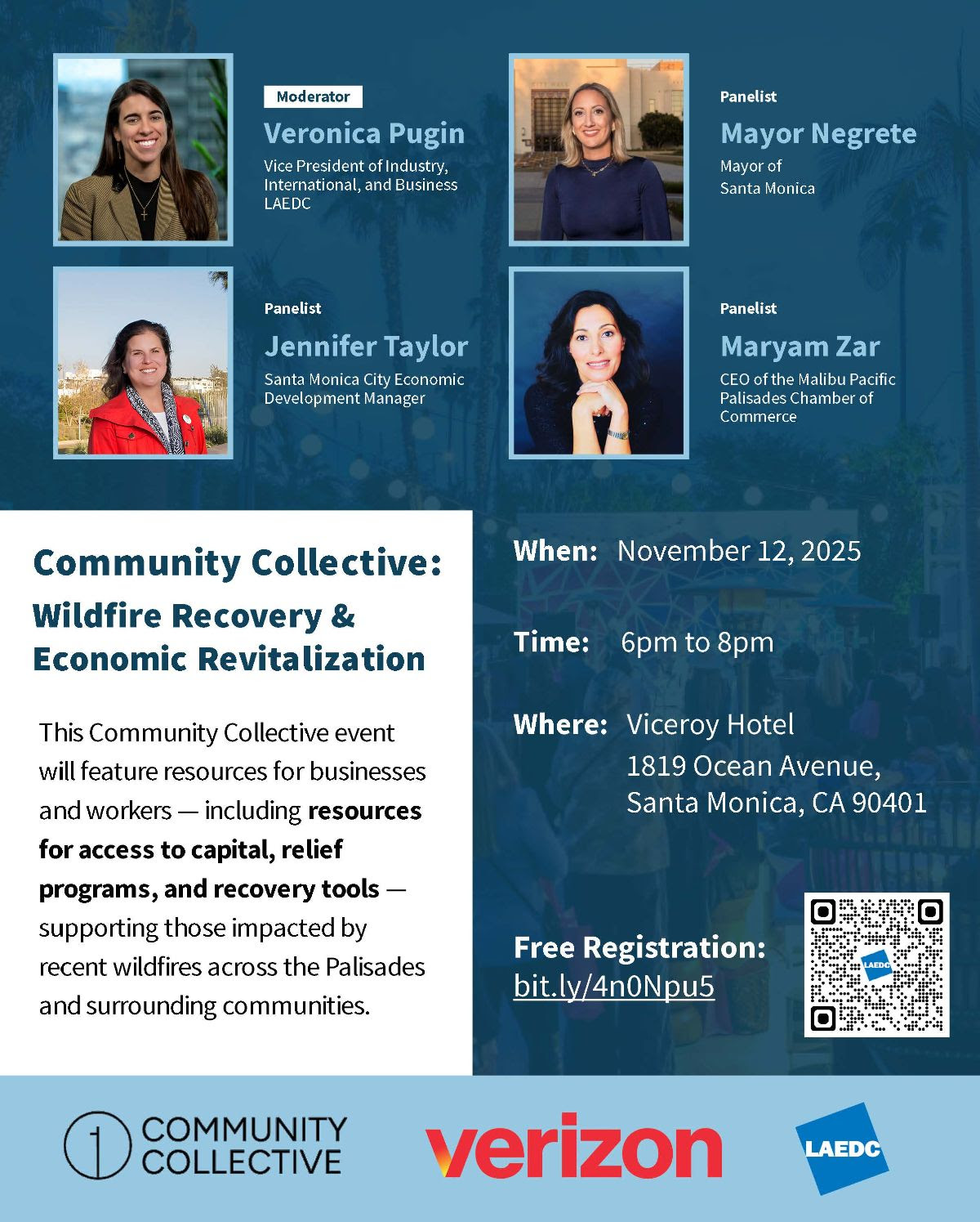 Connect with resources for businesses and workers — including access to capital, relief programs, and recovery tools — supporting those impacted by recent wildfires across the Palisades and nearby communities.